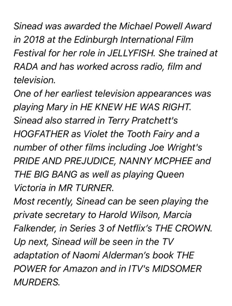 Sinead is a fantastic actress and I was really pleased when she agreed to an interview about her career highlights. She also chats about how the pandemic has affected her job.